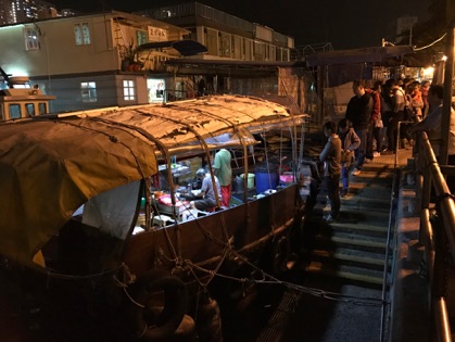 In the dark, fish-smelling recesses of Hong Kong’s Aberdeen Harbour we turned a corner one night and came upon an unexpected sight: a makeshift, floating restaurant bobbing between the fishing boats.